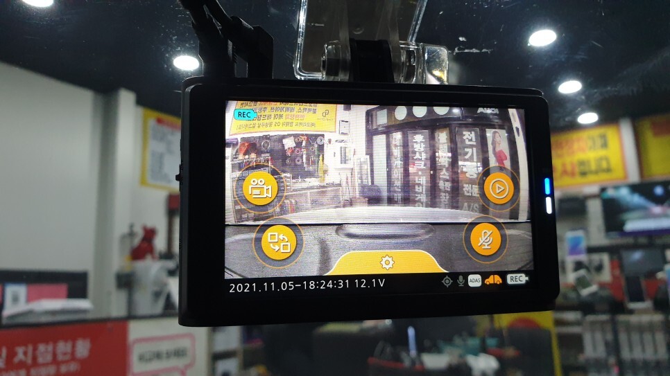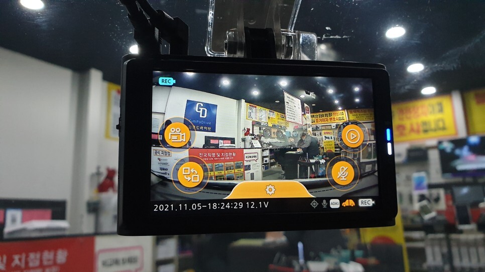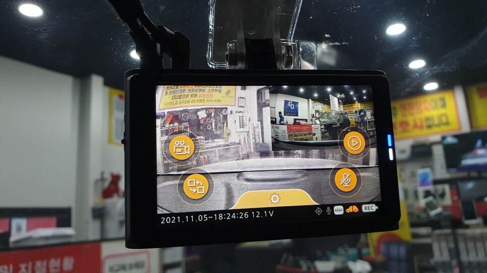 영상이 잘 찍힐 수 있게 위치를 선정하여 블랙박스를 설치 완료하였습니다.