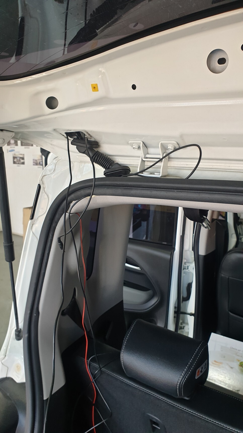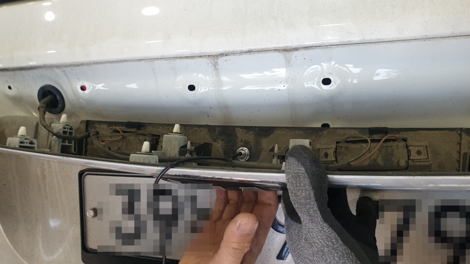 트렁크내장재를 탈거 후 배선을 연결하는데요!