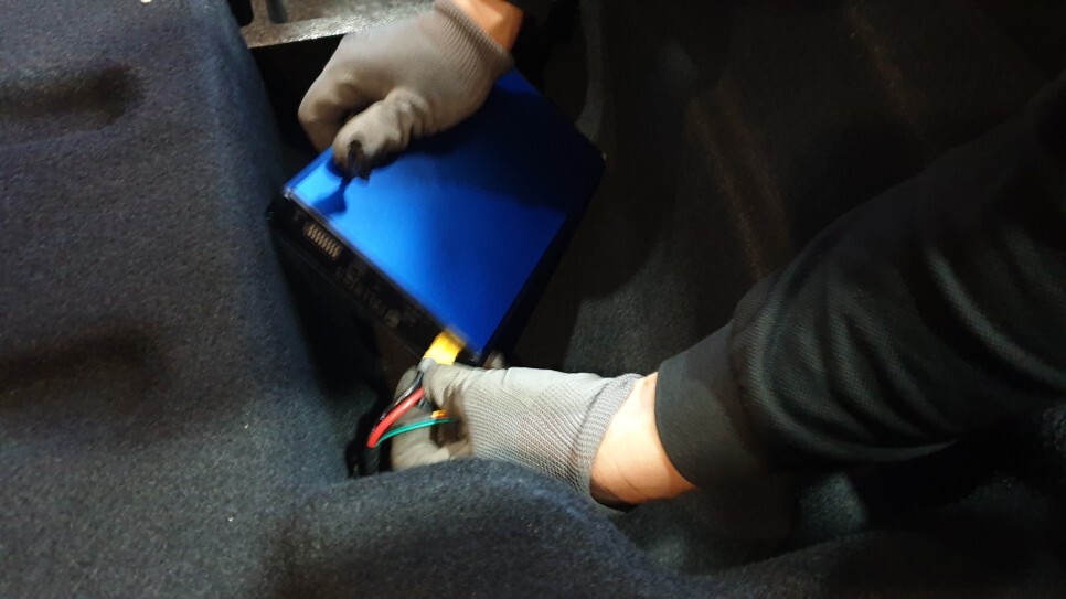 C필러에서 하단으로 리드된 배선은, 2열, 1열 까지 배선을 바닥의 부직포를 살짝 들면 순정배선이 있습니다