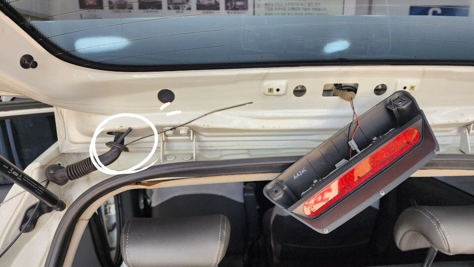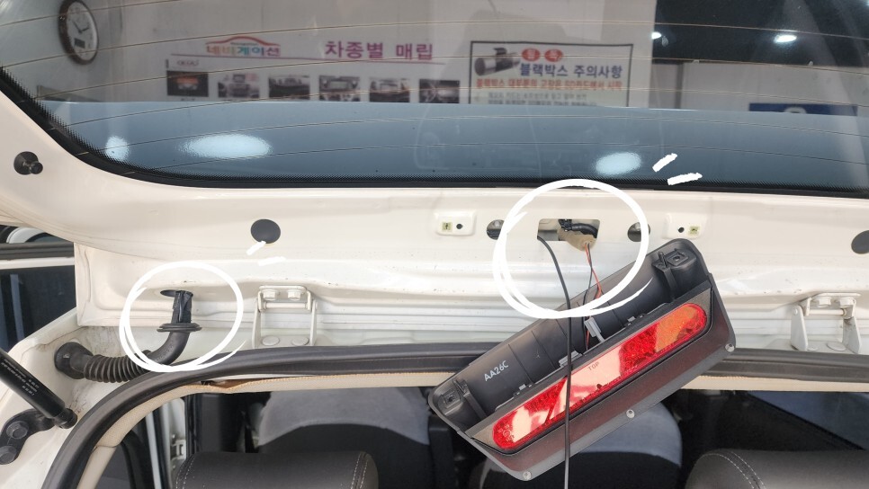 블랙박스 후방배선을 설치하고 있습니다.