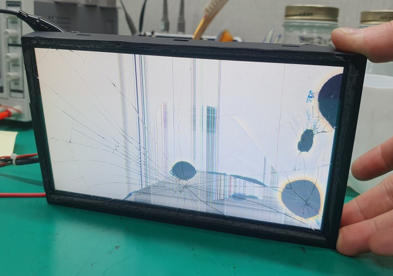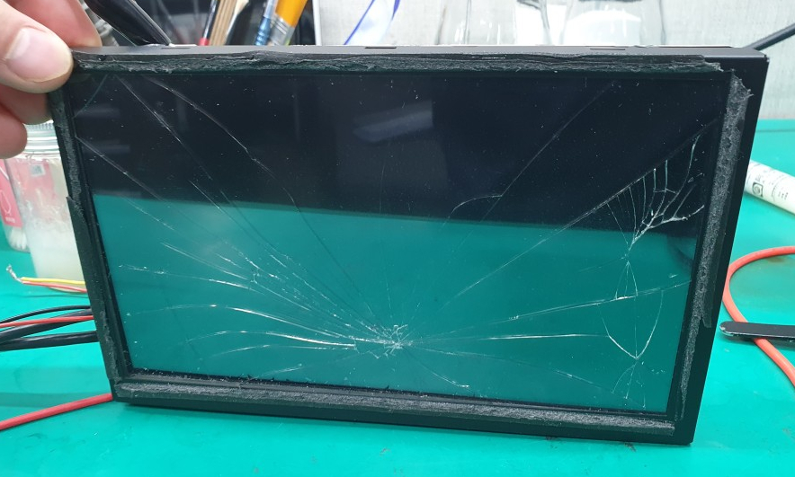 육안으로 보아도 터치패널이 전체적으로 파손된 상태입니다.