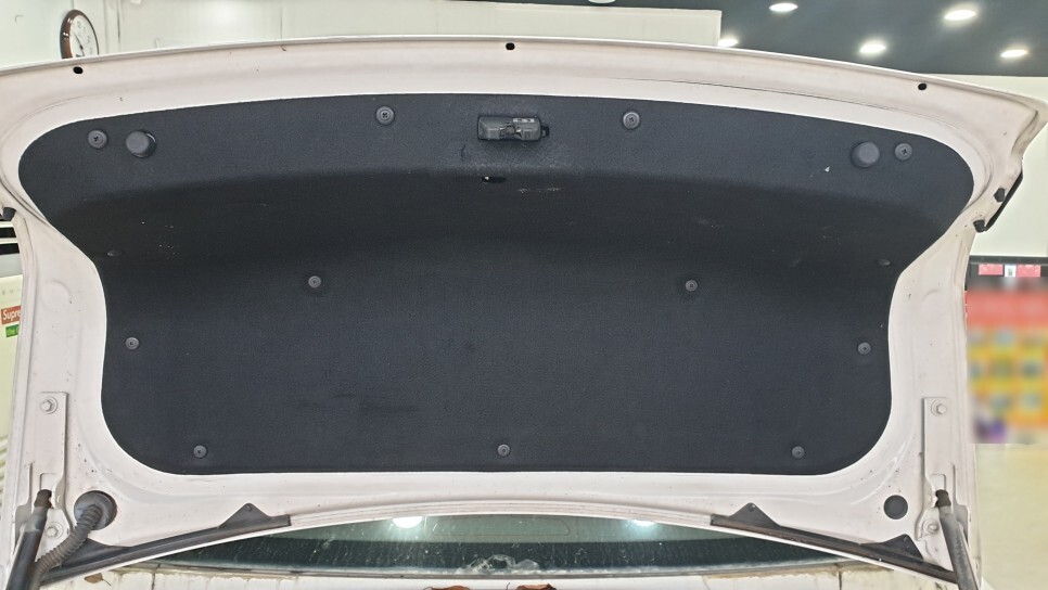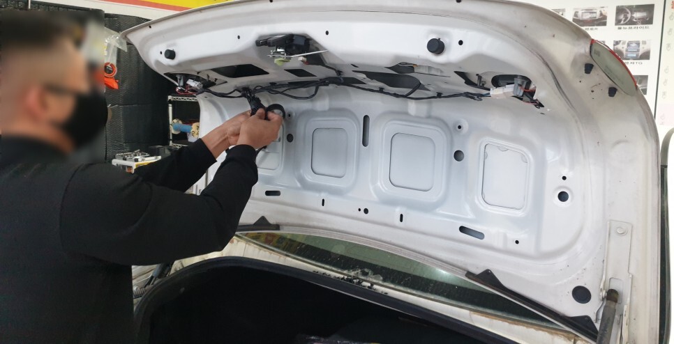 트렁크 내장제를 탈거하여 작업하고 있습니다.